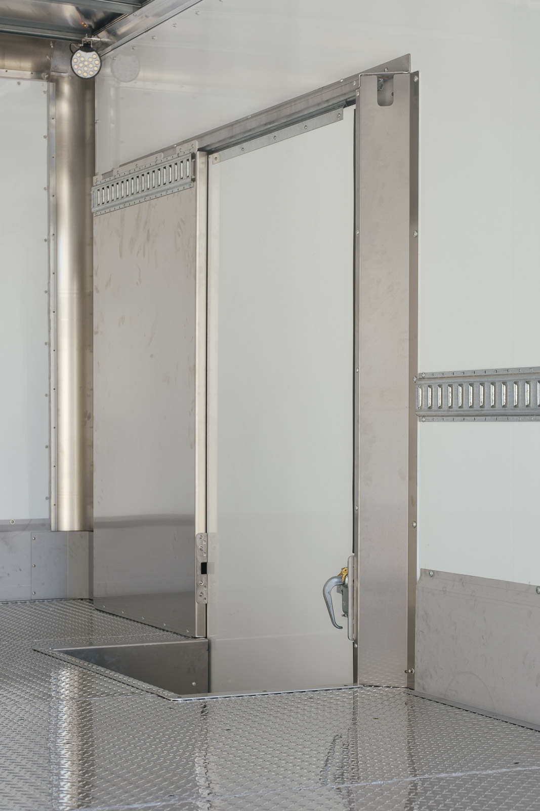 The floor is diamond plate over wood so its durable and grippy Scuff panels line the walls to hold up against constant loading. Bright LED dome lights with a built-in timer keep the interior well-lit, even during early-morning stops. Every option in this build was chosen to make the job easier, safer, and faster.
